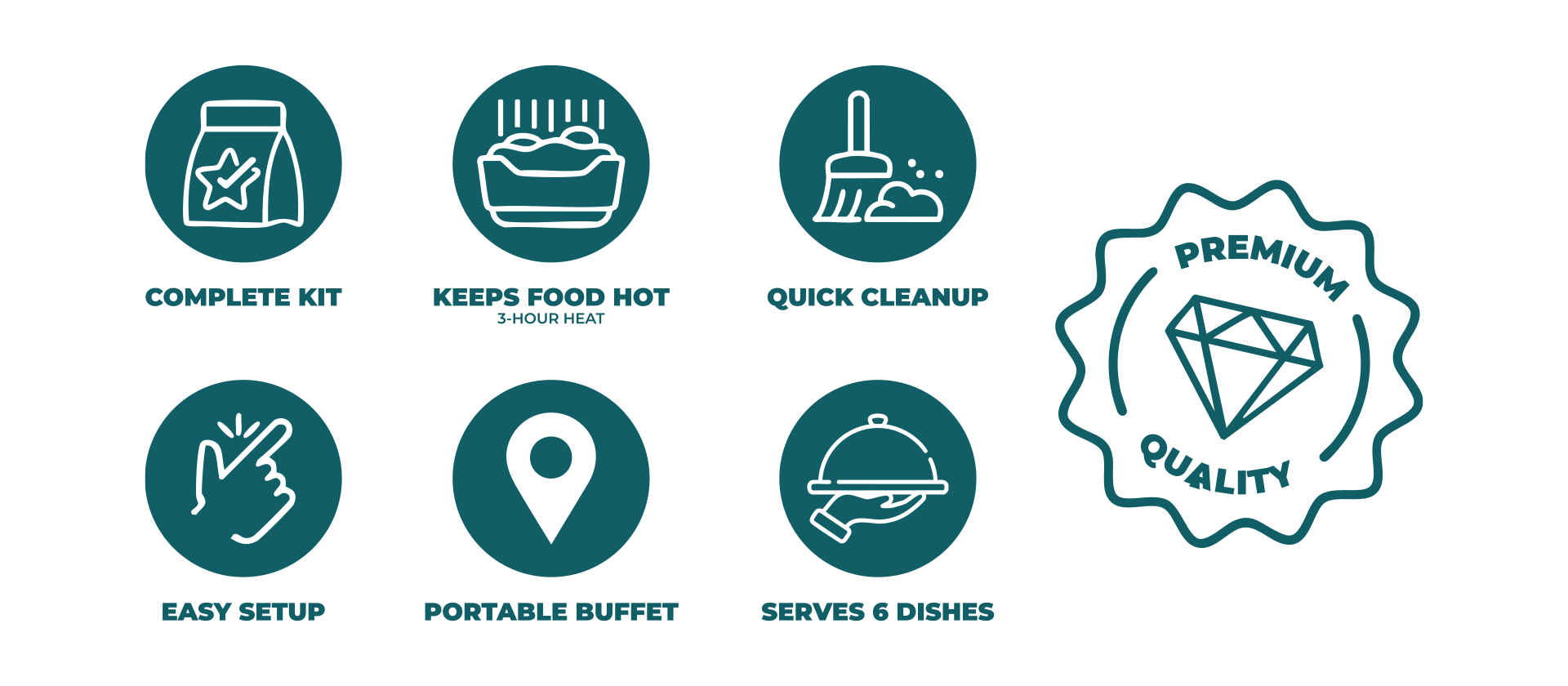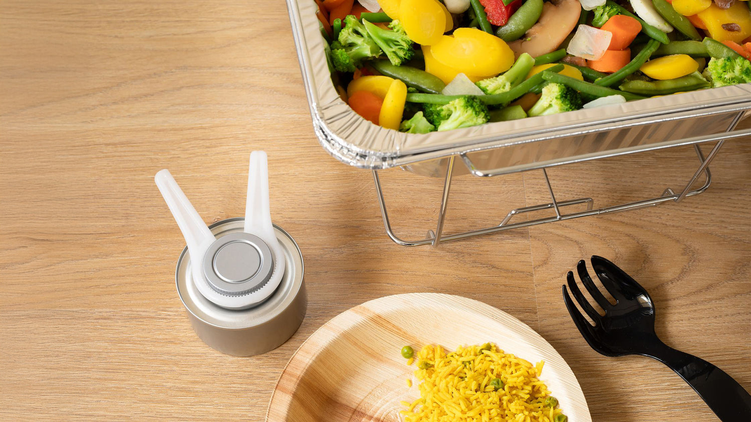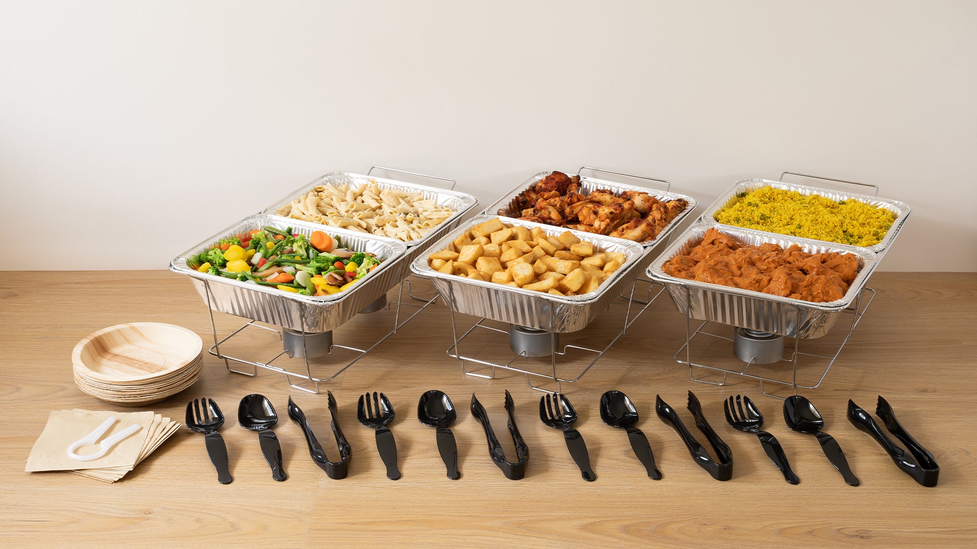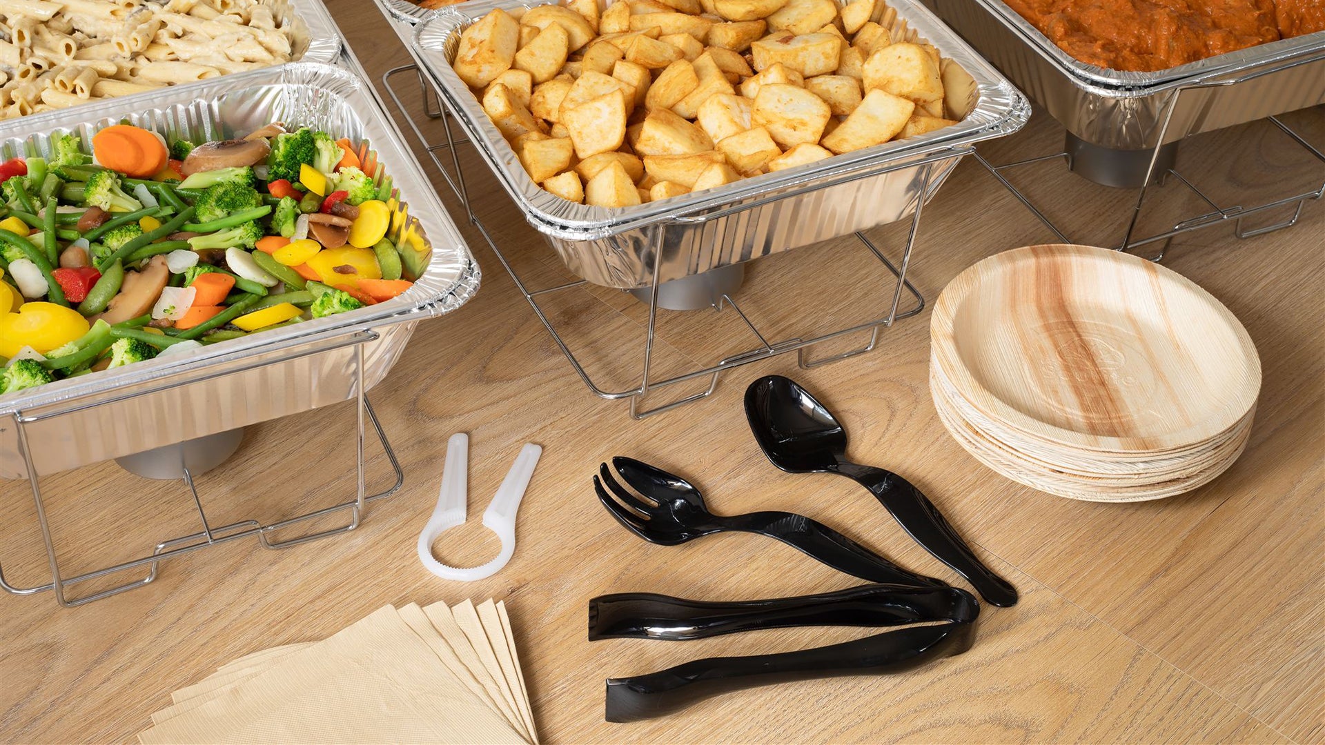A complete solution in one box. Increases average basket size compared to selling loose chafing dishes.