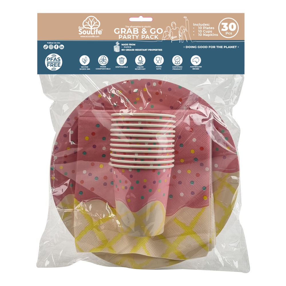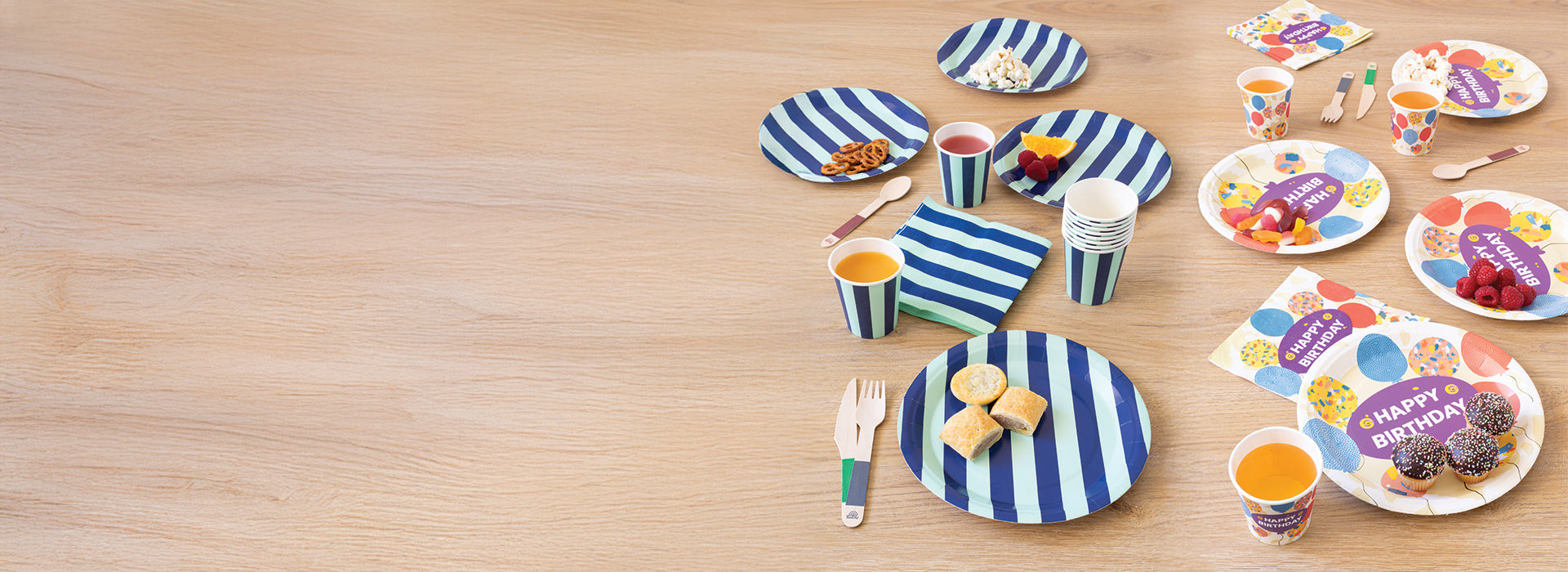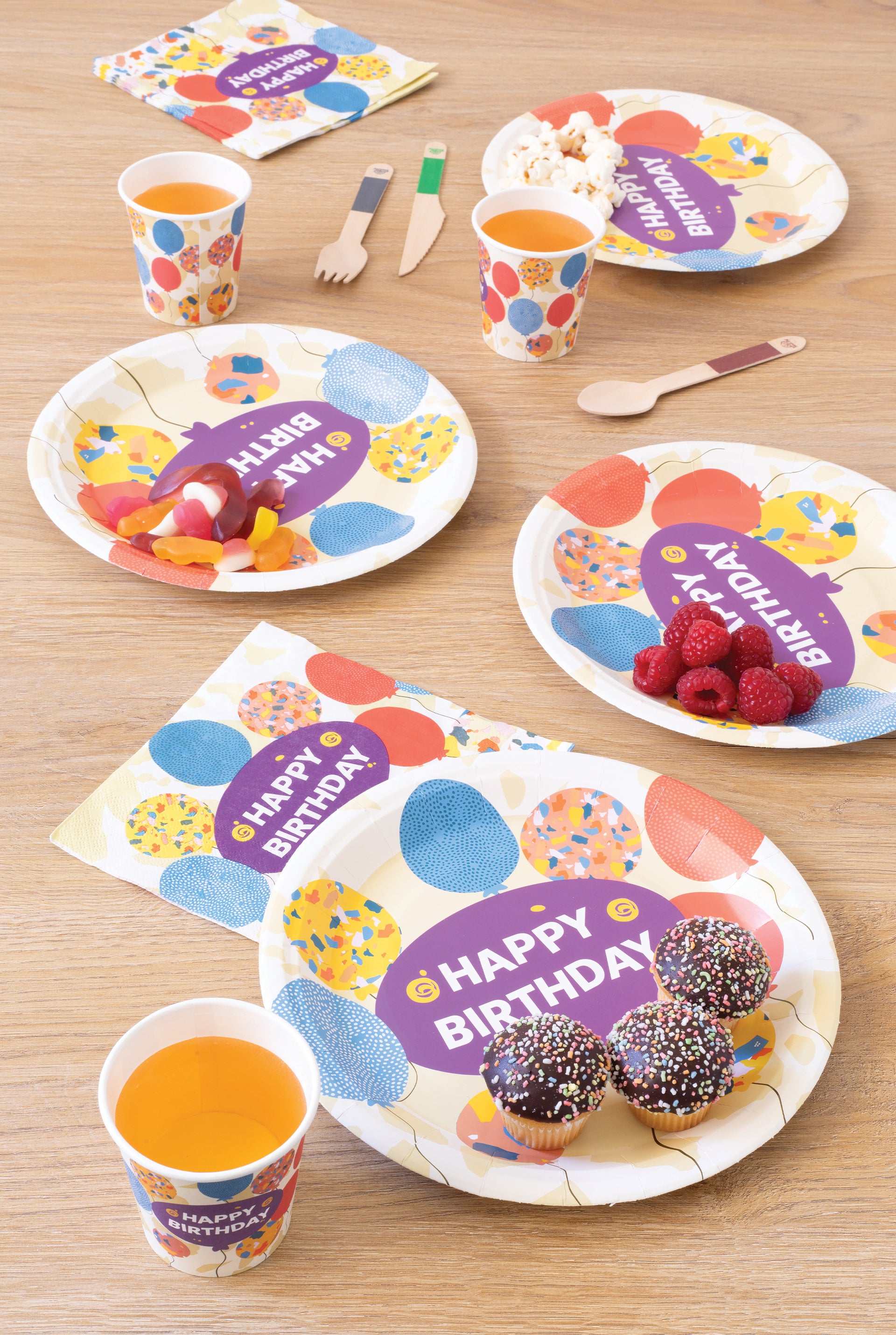 Don't just sell a pack of plates. Sell the whole party. Includes 10x Cups, 10x Plates, and 10x Napkins.