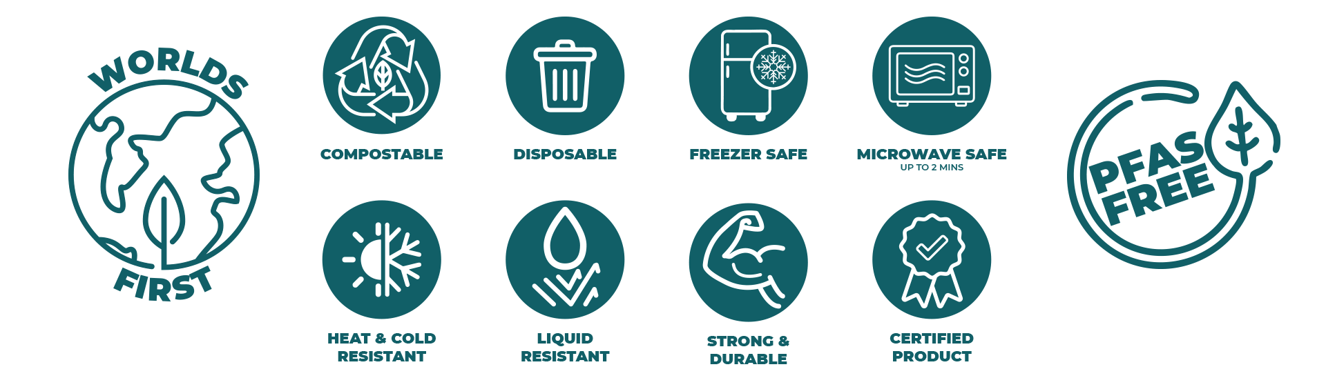 he tensile strength of Bamboo meets the heat-resistance of Bagasse. A hybrid material that is 100% renewable and 100% tougher than the competition.