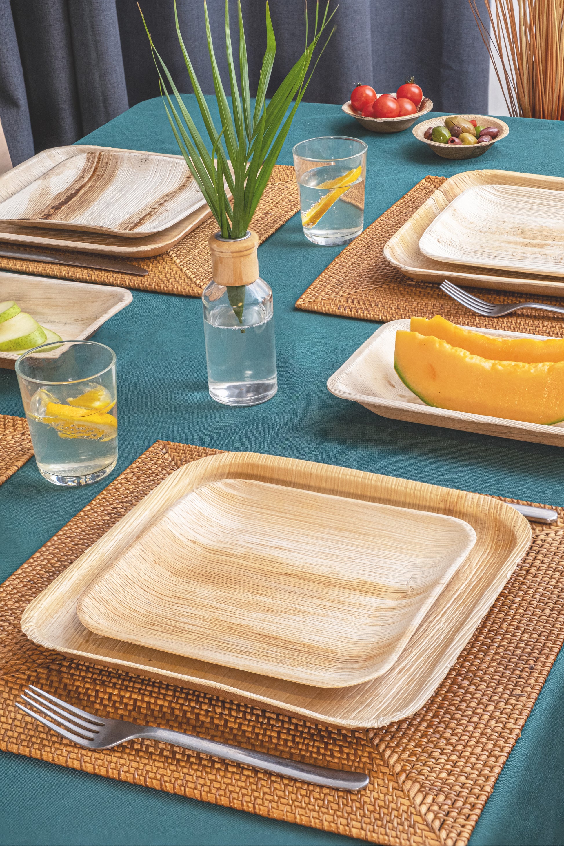 Take your next dining experience to the next level with these Areca Nut Leaf Square Plates! Crafted from naturally-fallen areca nut leaves, they are strong and can handle extreme temperatures while also being biodegradable, compostable, and leaving no trace. Enjoy a wild and eco-friendly dining adventure!